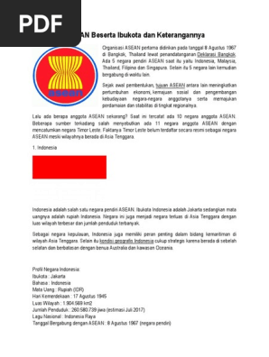 Profil 10 Negara Asean Beserta Ibukota Dan Keterangannya