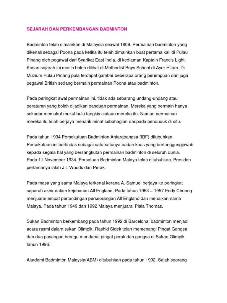 Doc Sejarah Badminton Dunia Najmi Ff Academia Edu