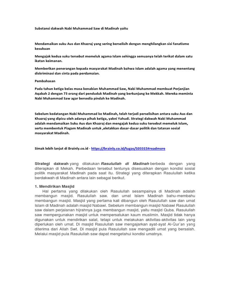 Substansi Dakwah Nabi Muhammad Saw Di Madinah Yait Docx