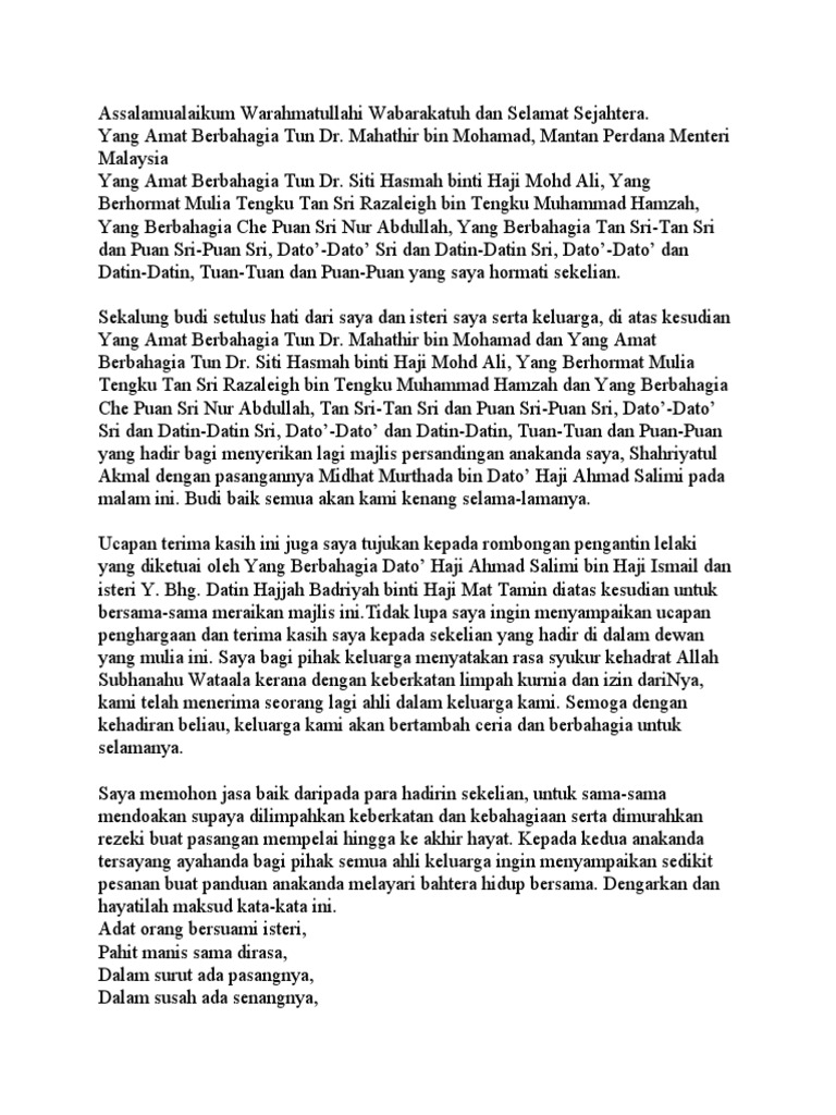 Contoh Teks Ucapan Penghargaan Majlis Perkahwinan