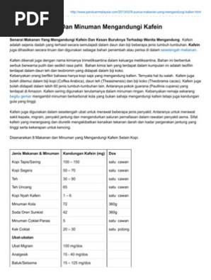 Senarai Makanan Dan Minuman Mengandungi Kafein
