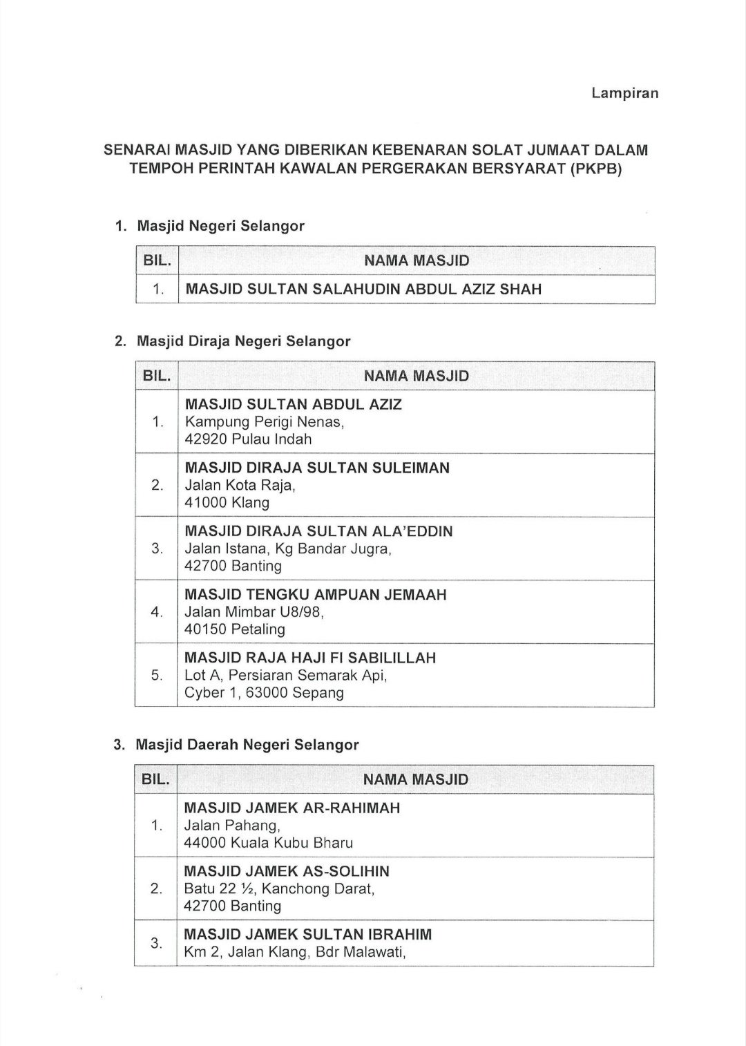 Media Selangor On Twitter Ini Senarai Masjid Yang Dibenarkan Solat Jumaat Dalam Tempoh Pkpb