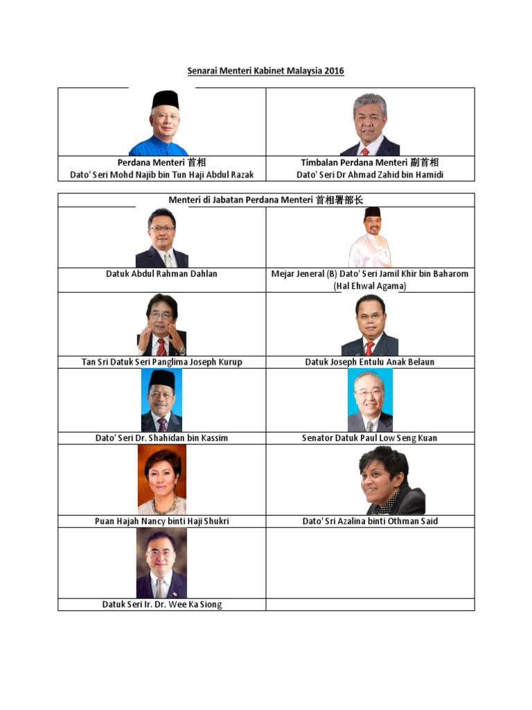Senarai Menteri Kabinet Malaysia 2018 Exam Ptd Malaysia Photo Photo Wall