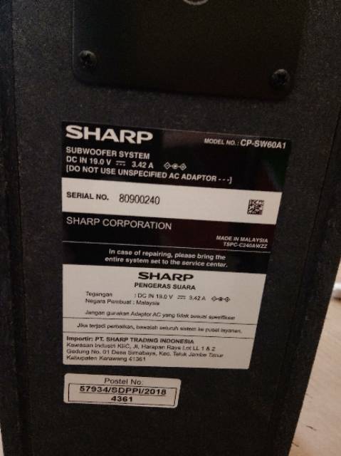 Sharp Subwoofer Cpsw 60a1 13cm Woofer Bluetooth Ready Gojek Only Shopee Indonesia