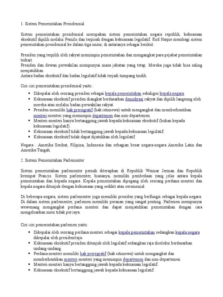 Pengertian Sistem Pemerintahan Parlementer Dan Presidensial Docx