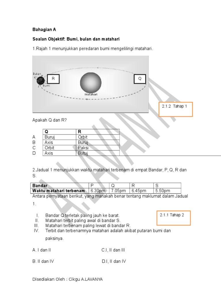 Soalan Sains Tahun 5 Bumi Bulan Dan Matahari Jalan Kutai B