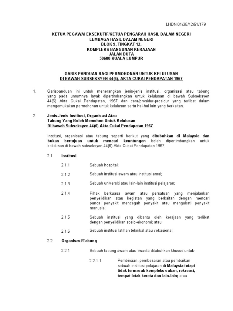 Http Www Hasil Gov My Pdf Pdfam Permohonanuntukkelulusandibawahseksyen44 6 Bm Pdf