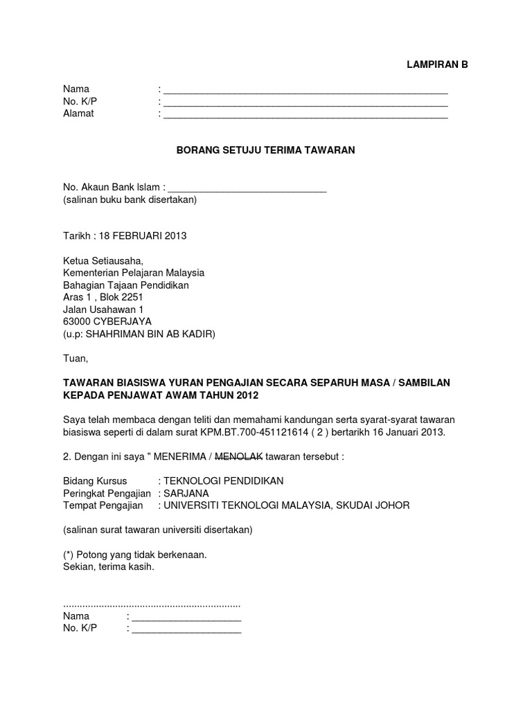 Surat Setuju Terima Tawaran Pelantikan Pdf