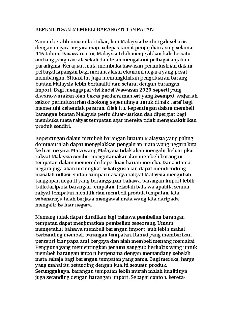 Contoh Karangan Beli Barangan Buatan Malaysia Docx