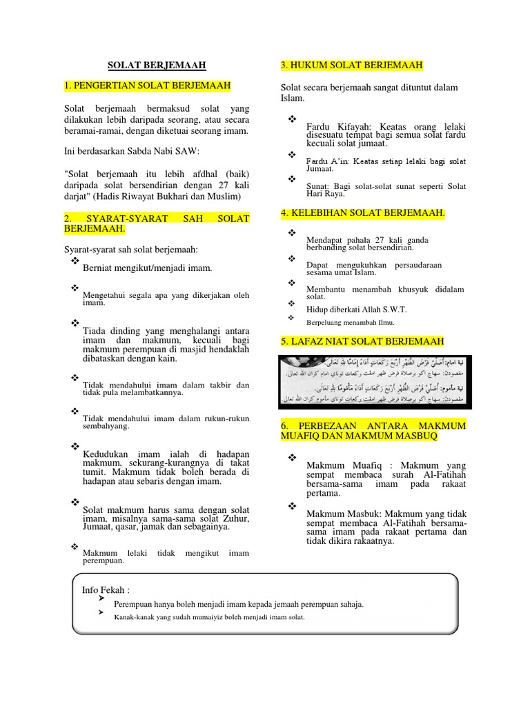 Nota Pendidikan Islam T5 Solat Berjemaah Pdf Document