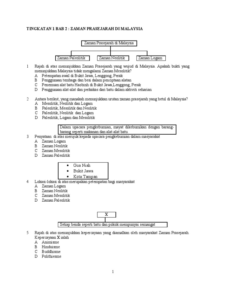 Zaman prasejarah malaysia dapat dijejaki seawal 200 000 tahun yang lalu berikutan penemuan alatan alatan yang diperbuat daripada batu dan dijumpai di tapak arkeologi kota tampan lenggong. Zaman prasejarah malaysia dapat dijejaki seawal 200 000 tahun yang lalu berikutan penemuan alatan alatan yang diperbuat daripada batu dan dijumpai di tapak arkeologi kota tampan lenggong rangka manusia terawal perak man yang berusia 11 000 tahun dan perak woman yang berusia 8 000 tahun juga turut dijumpai di lenggong terdapat kawasan pembuatan peralatan peralatan batu yang tidak terganggu. 3 5 zaman prasejarah di malaysia zaman paleolitik 40 000 sm tingkayu sabah gua niah sarawak kota tampan perak lembah mansuli sabah zaman mesolitik 12 000 2 800 sm jenderam hilir selangor gua madai sabah gua cha ulu kelantan bukit tegun lembu perlis zaman neolitik 2 800 500 sm gua kecil pahang. Di perak bukit jawa kota tampan dan bukit bunuh di lenggong.