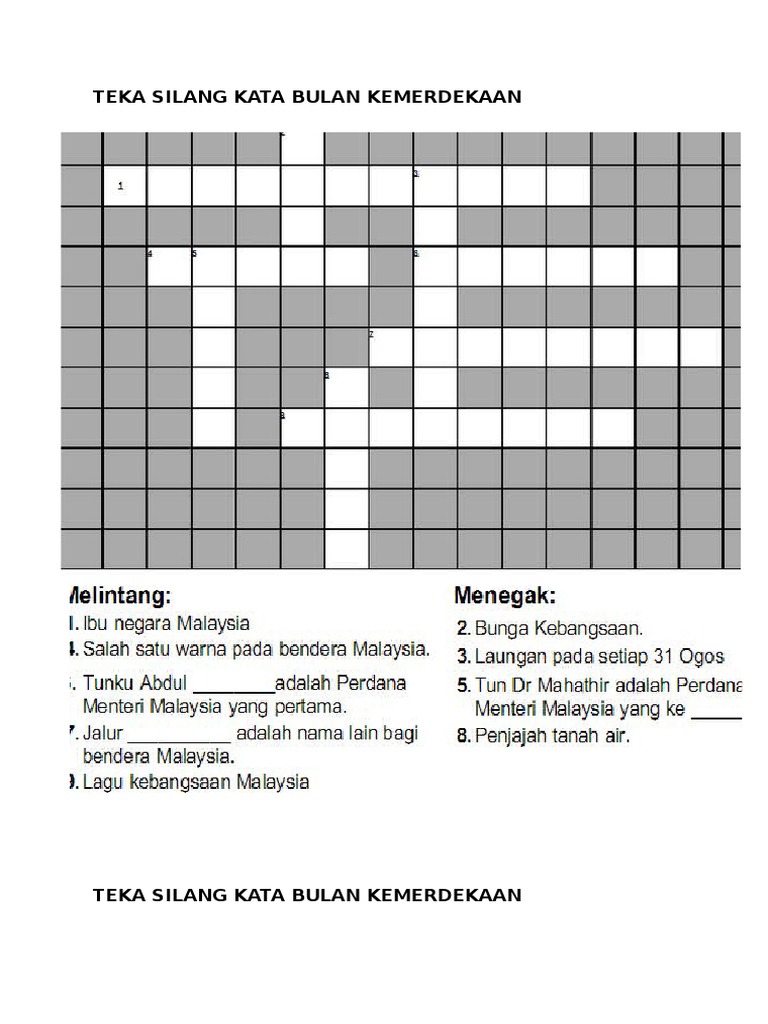 Contoh Teka Silang Kata Bulan Kemerdekaan Yang Sangat Bernilai Untuk Para Murid Download Pekeliling Terbaru Kerajaan