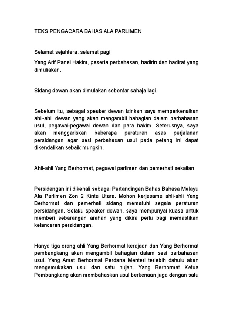 Doc Contoh Teks Pendahuluan Bahas Ala Parlimen A Tuan Yang Dipertua Dan Ahli Ahli Dewan A Kami Menerima Dengan Pindaan Definisi Usul Pihak Kerajaan A Degan Izin Tuan Yang Dipertua Saya Mohon Meminda