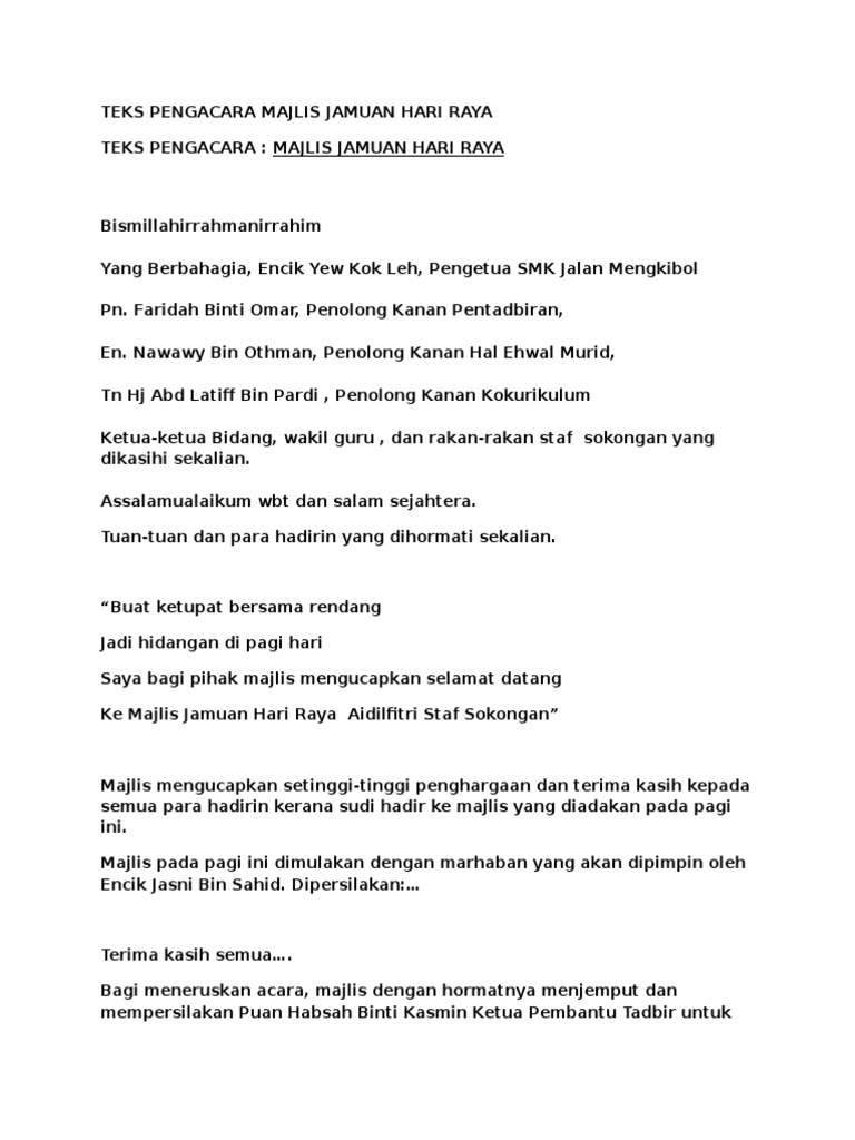 Teks Mc Sempena Majlis Hari Raya Aidilfitri 2013 In 2020 Teks Mathematics