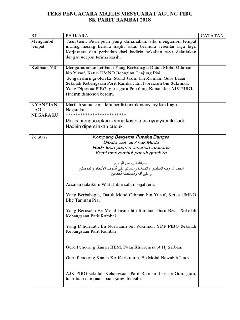 Teks Pengacara Mesyuarat Agung Pibg 2017