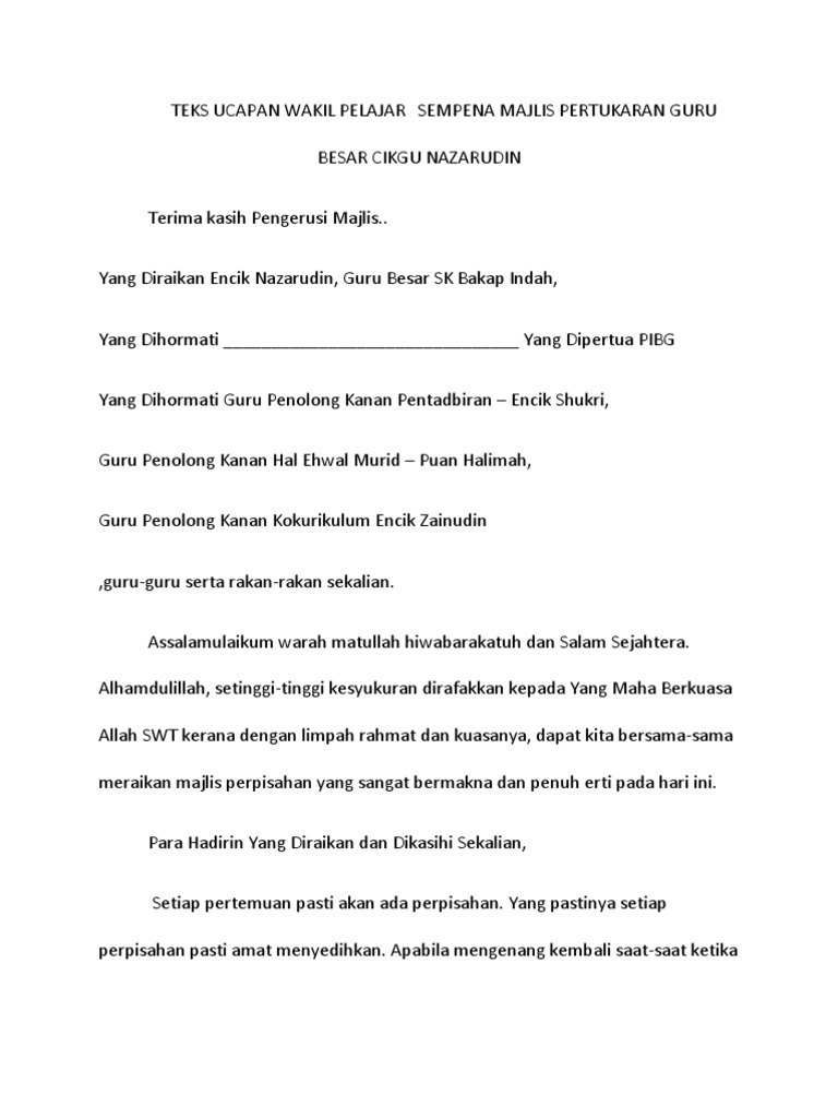Doc Contoh Ucapan Wakil Murid Untuk Majlis Persaraan Sharina Sharina Academia Edu