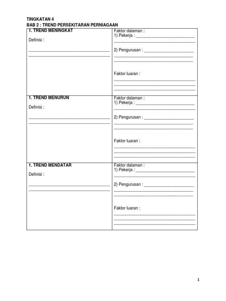 Tingkatan 4 Bab 2 Trend Persekitaran Perniagaan 1 Trend Meningkat