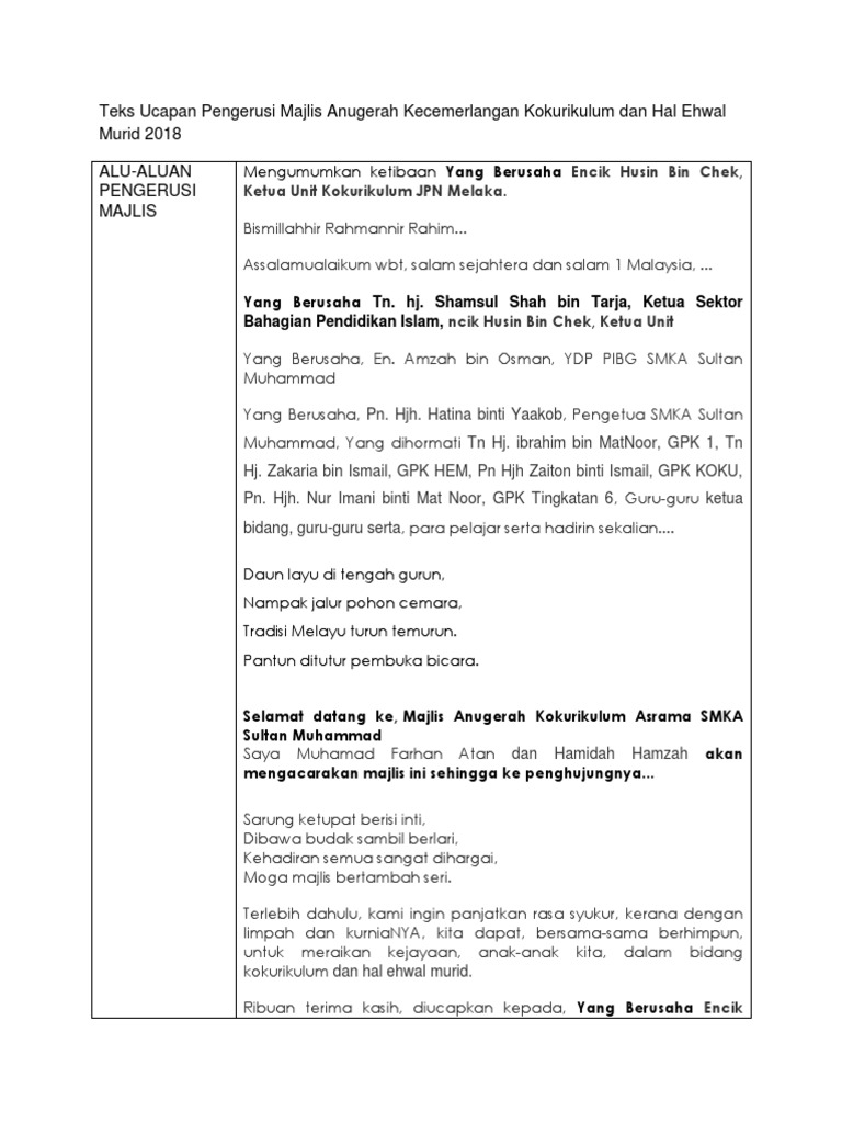 Teks Ucapan Pengacara Majlis