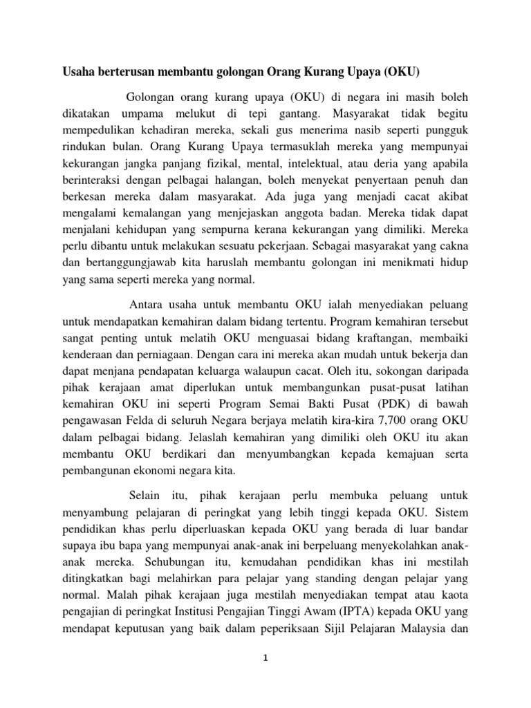 Contoh Karangan Pmr Langkah Langkah Membantu Orang Kurang Upaya Oku