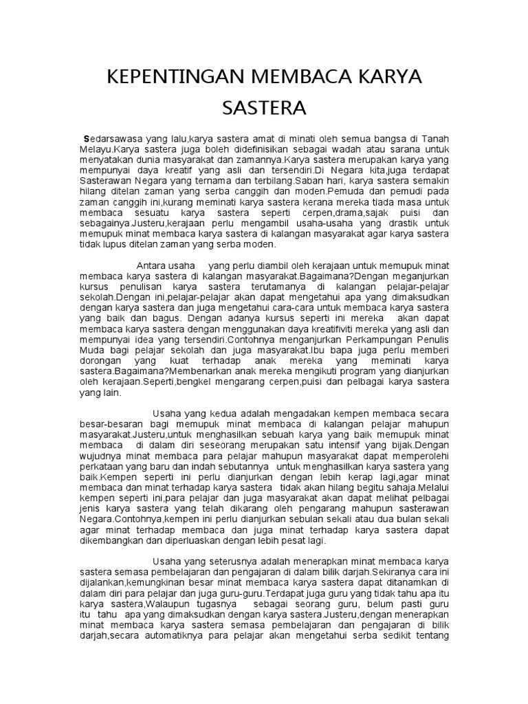 Kepentingan Membaca Karya Sastera Pdf