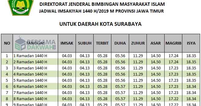 Jadwal Imsakiyah Dan Sholat Ramadhan 2020 1441 H Surabaya Media Arek Jawa Timur